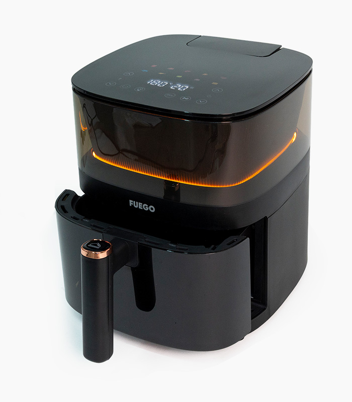 Friteza na vrući zrak Fuego AF-515A-WH kapaciteta 5.0 litara i snage 1500W omogućava vam da pripremite hrskavu i ukusnu hranu bez viška ulja. Zahvaljujući naprednoj tehnologiji zagrijavanja zraka i temperaturnom rasponu 40-230°C, svaki komad povrća, mesa ili snacka postaje hrskav izvana, a mekan iznutra – idealno za one koji žele kombinaciju okusa i zdravlja.