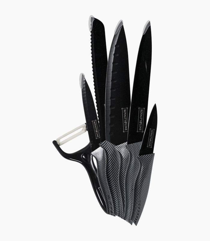 Royalty Line RL-CB5 je set kuhinjskih noževa osmišljen za sve koji žele lako, sigurno i precizno rezanje, bilo da tek započinju svoje kulinarsko putovanje ili već vladaju kuhinjom poput profesionalnog šefa. Svaki nož izrađen je od nehrđajućeg čelika visoke izdržljivosti, a dodatno zaštićen keramičko-mramornim neljepljivim premazom, koji sprečava lijepljenje namirnica i omogućava čišćenje u svega nekoliko sekundi.