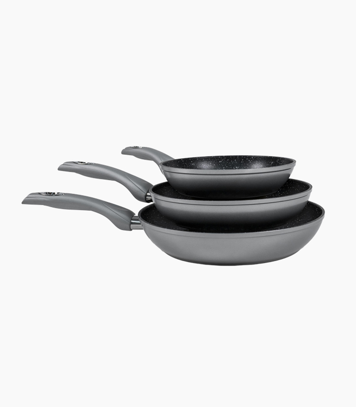 Set od 3 mramorne tave donosi tri tava za prženje — promjera 20 cm, 24 cm i 28 cm, osmišljene da zadovolje sve kuhinjske potrebe. Bilo da pripremate male porcije, obiteljski ručak ili savršeno pečenu jaja, ovaj set vam daje fleksibilnost i udobnost.
